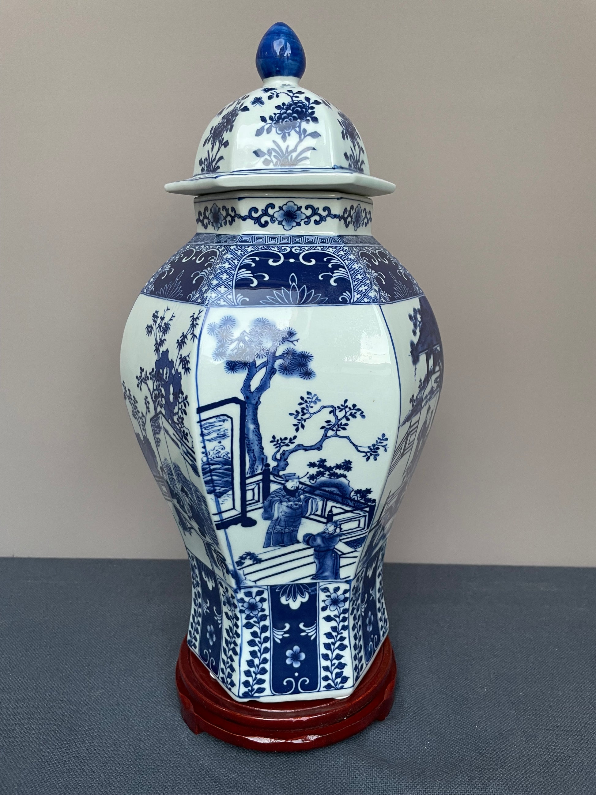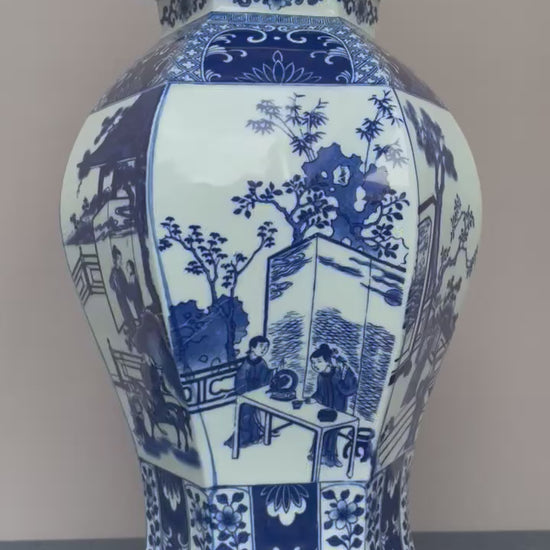 Chinoiserie vase Hexagon Blue and White Chinese Porcelain Ginger Jar