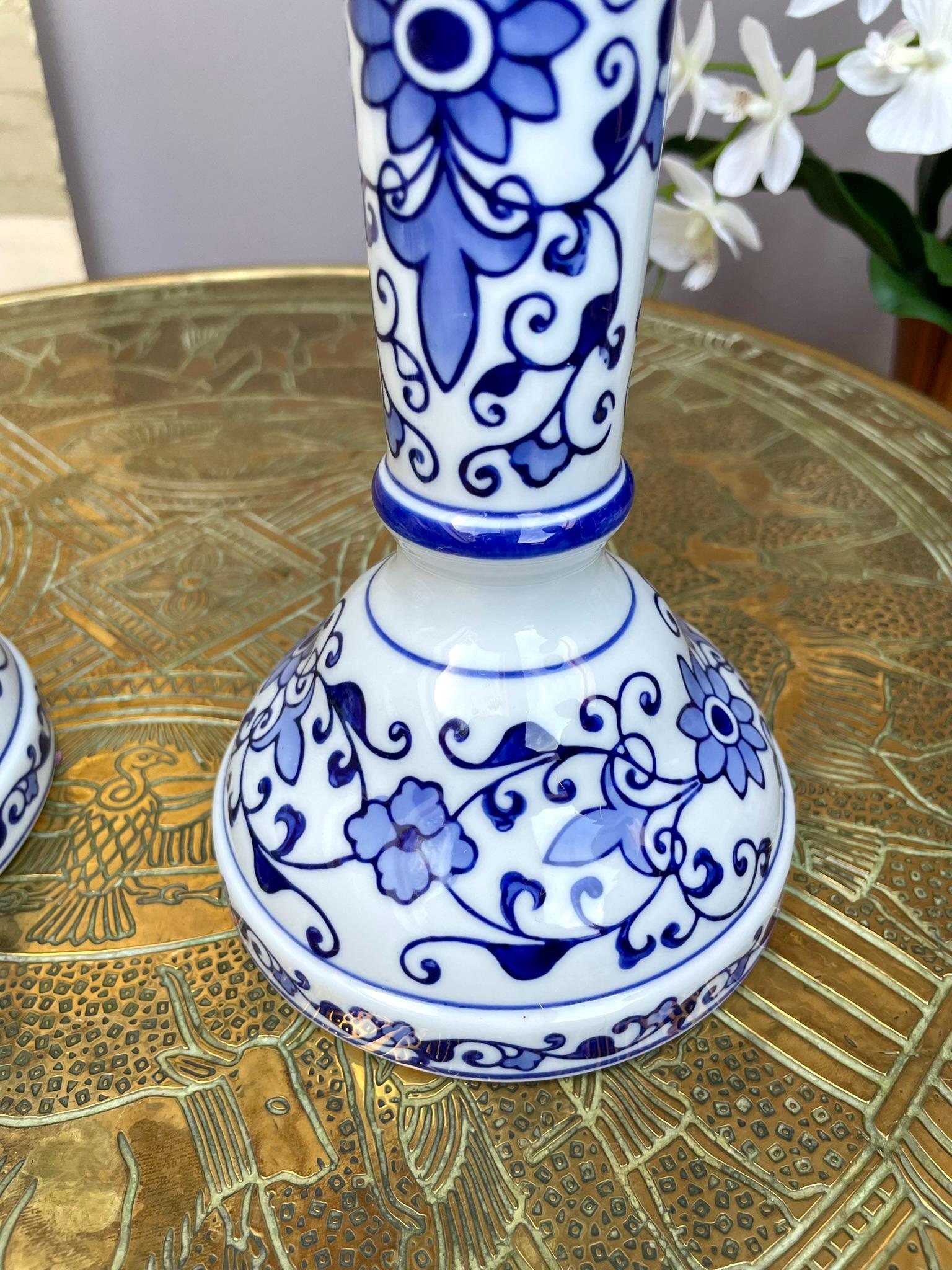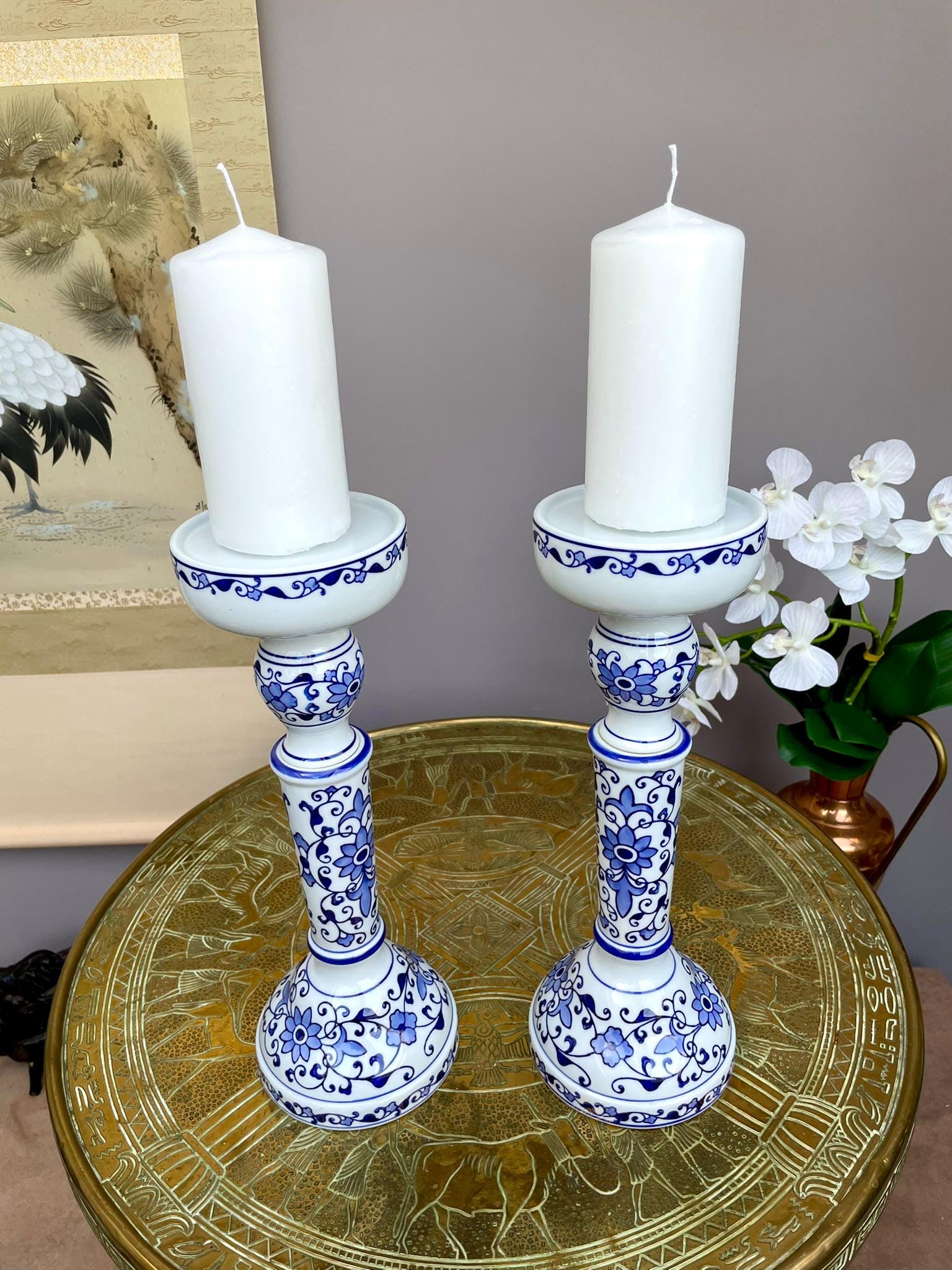 Fine Hand-Painted Blue & White Porcelain Candle Holder Pair • Artisan-Made Chinoiserie Centerpiece • Luxury Table Décor in Collector-Quality
