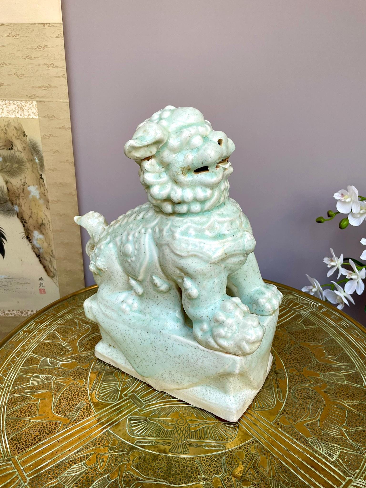 This celadon lion offers a sense of calm strength and cultural elegance wherever it is placed.